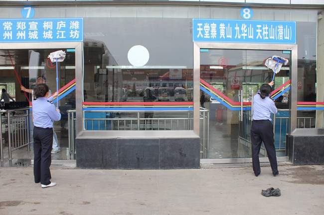各部门负责人以身作则、率先垂范(fàn),带领员工卷起裤脚穿上胶鞋,冲(chōng)洗售票厅、候车大厅(tīng)地面,清除地面污渍,擦洗大厅内墙柱、售票窗口台面、玻璃围(wéi)墙(qiáng)、门窗、不锈钢护栏(lán)、安检仪(yí)器、空调、内柜、宣传栏等,清除外墙小广告、花坛垃圾、停车棚杂物,清理安检站房内及地(dì)槽内积水垃圾,督促站内超市营业人员补办健康证明,整体环境卫(wèi)生基本达到(dào)了(le)“六净九(jiǔ)无”标准。