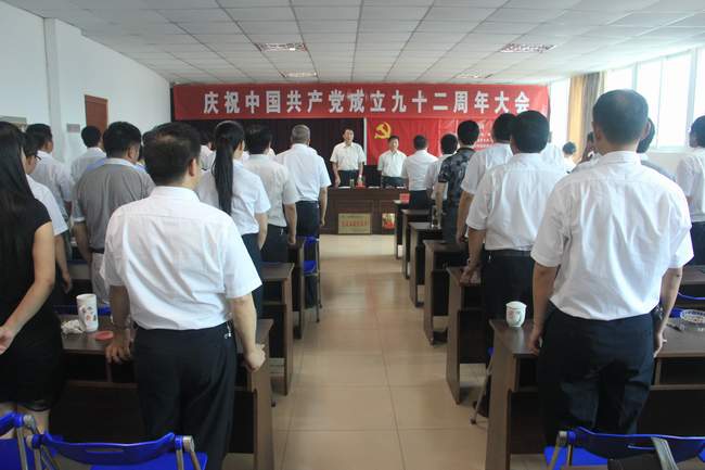 7月1日上(shàng)午(wǔ),总公司庆祝建党(dǎng)92周年(nián)大会在《没有共产党就没有新中国》歌声(shēng)中隆重召(zhào)开。大会由总经理刘曙主持,所属各支部(总支)书记、支委、受表彰的优秀共产党员以及新党员参加了会议。